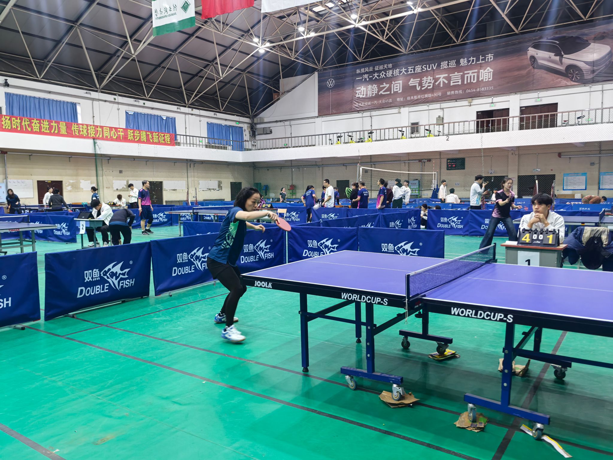 在单项赛中,男子单打、女子单打及混合双打的竞争尤为激烈,各组别选手均展现出高超的球技和顽强的拼搏精神。选手们全神贯注,将精益求精的“工匠精神”融入每一板击球。老将稳健、新锐锋芒,每一分争夺都体现了专注、执着与超越。最终,来自体育学院的教师选手韩杨、曹阳分获男子单打、女子单打冠军,并获混合双打冠军。