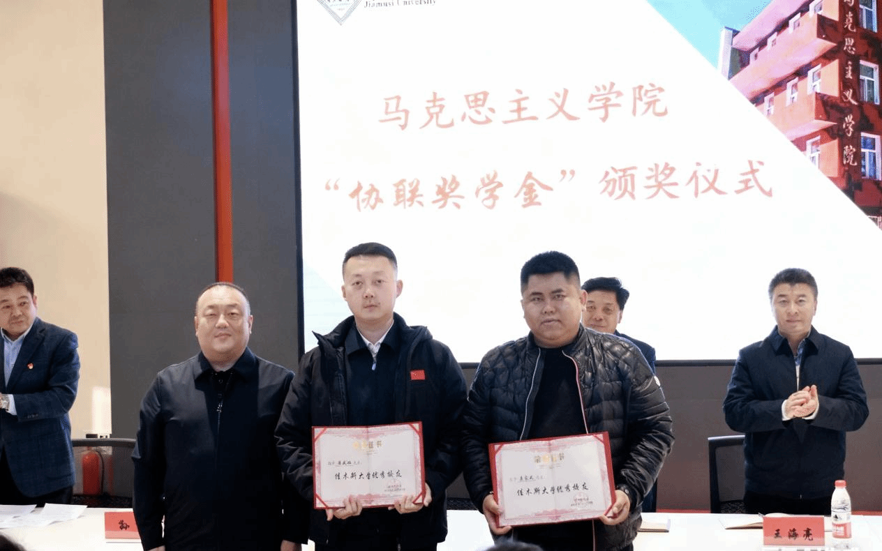 仪式上,马克思主义学院院长王海亮详细解读《佳木斯大学马克思主义学院协联奖学金资助办法》,副院长王春刚宣读首届“协联奖学金”获奖学生名单。与会领导为获奖学生颁发荣誉证书,并为潘威旭、奚家威两位校友颁发“优秀校友”荣誉证书。