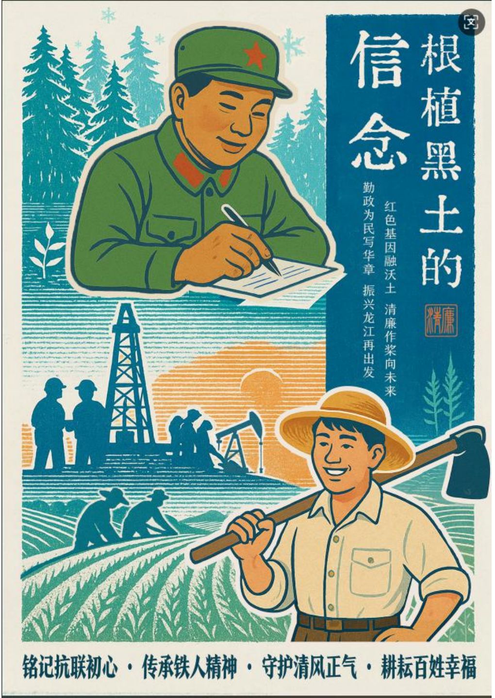 海报融入校园建筑与 “勤廉” 元素。校园建筑是青春记忆载体,“勤廉” 二字醒目呈现。以建筑为依托,将勤廉理念与校园场景结合,借熟悉的校园景观,让青年学子在视觉冲击中,感受勤廉精神,于艺术化表达里深化廉洁认知,涵养清风正气。