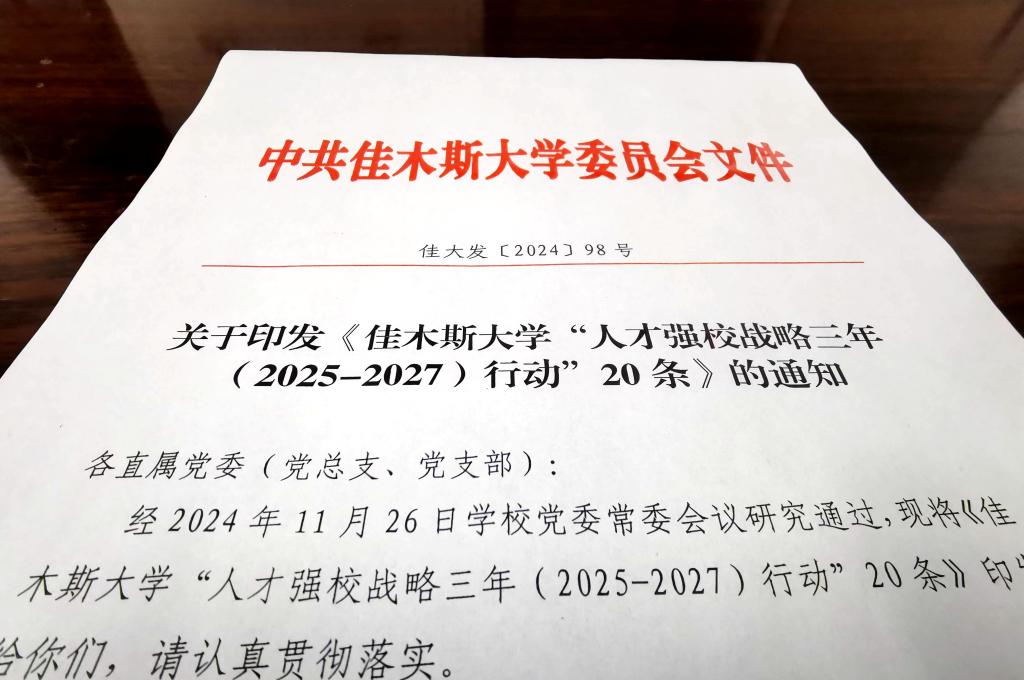 学校出台《佳木斯大学“人才强校战略三年(2025-2027)行动”20条》
